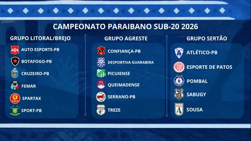 Clubes definidos por região para o Campeonato Paraibano Sub-20 2026 As 17 equipes que disputarão o Campeonato Paraibano Sub-20 de 2026 já estão confirmadas e foram distribuídas em três...