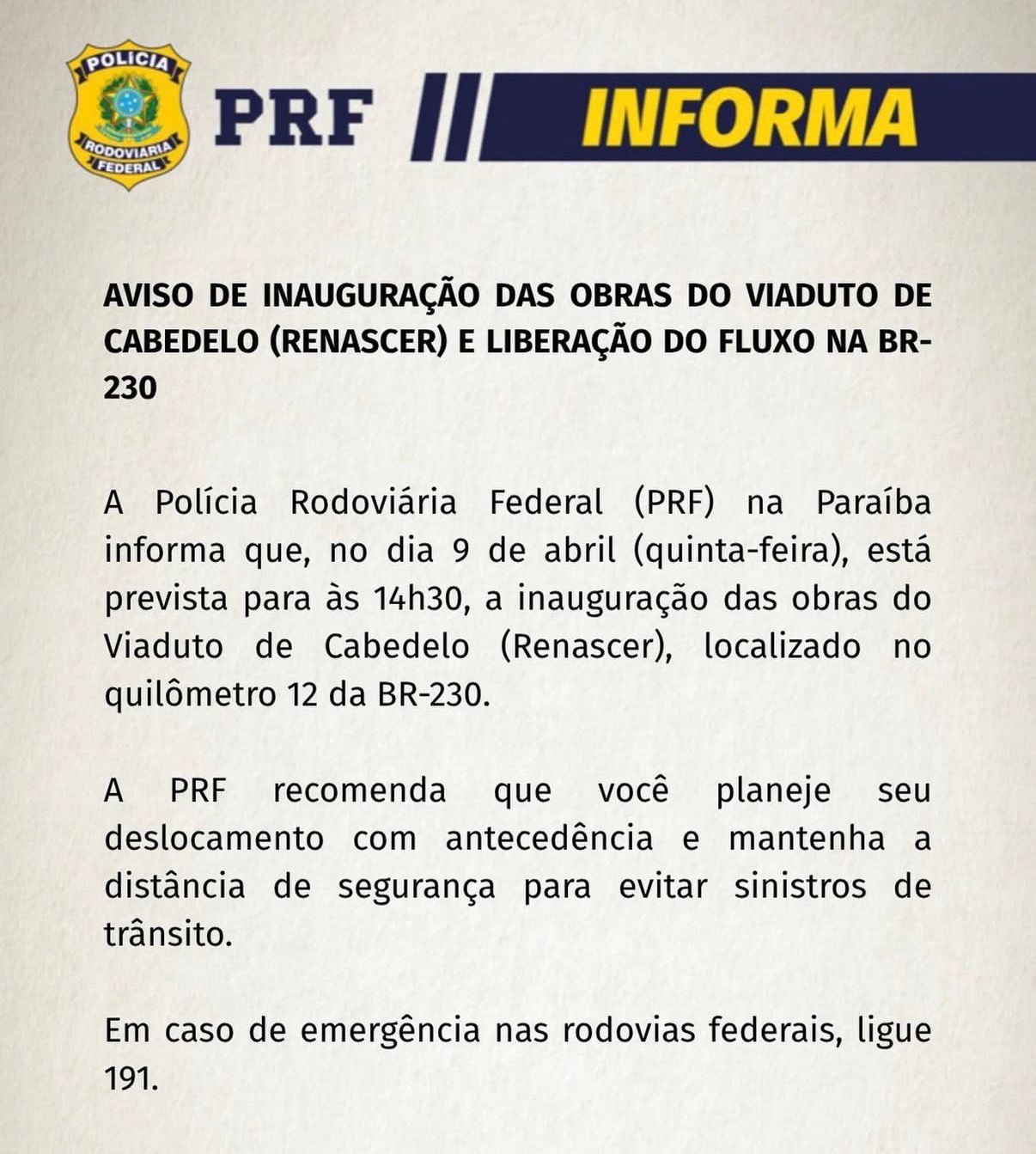 Viaduto do Renascer, na BR-230, será liberado ao tráfego nesta quinta-feira (9) Viaduto do Renascer será reaberto ao tráfego nesta quinta-feira O Viaduto do Renascer, localizado no quilômetro 12 da BR-230,...