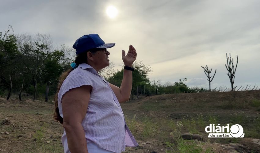 Apesar de chuvas pontuais em dezembro do ano passado, os volumes registrados foram insuficientes para recuperar os reservatórios. Em janeiro, a precipitação não ultrapassou um milímetro e não contribuiu para encher os açudes, que ainda exibem o fundo de lama. Sem pasto, produtores como Dona Irani Mangueira precisam recorrer a alternativas para alimentar o rebanho.