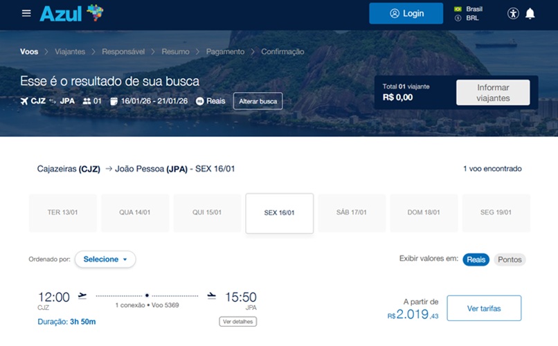 Embora a ampliação de oferta represente um avanço na conectividade aérea do Sertão paraibano, o preço chamou atenção. A pesquisa ao vivo indicou que o custo do bilhete de ida e volta de Cajazeiras a João Pessoa, mesmo com a escala, ultrapassa os R$ 2 000.