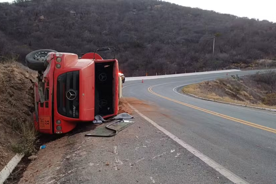 Um caminhão-tanque tombou na madrugada desta quinta-feira (23) na serra de Santa Luzia, no quilômetro 278 da BR-230, sentido Campina Grande, no interior da Paraíba.