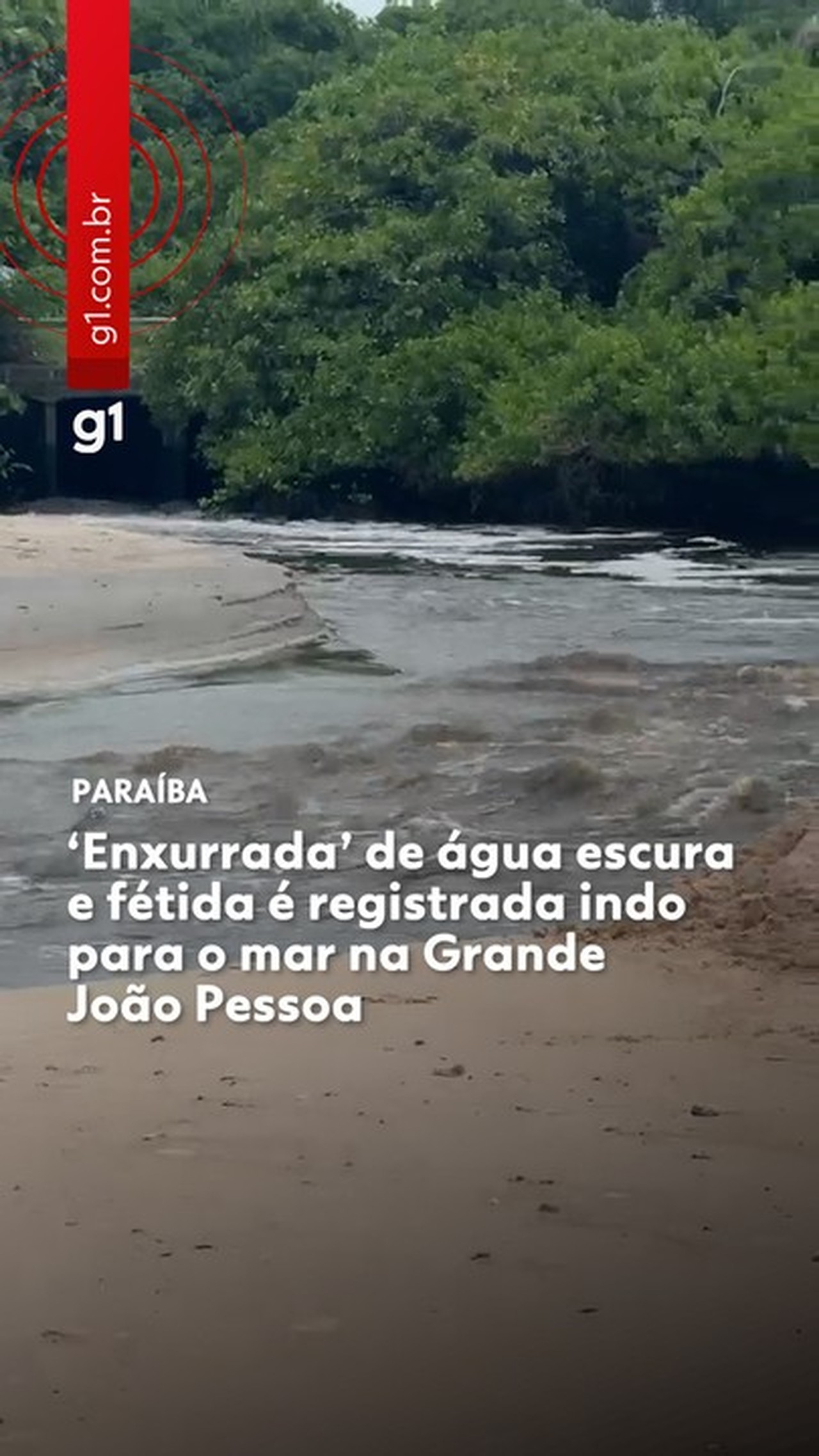 Uma corrente de água escura e com cheiro forte foi filmada desaguando no mar entre os bairros do Bessa, em João Pessoa, e Intermares, em Cabedelo, na manhã de domingo (19). Equipe da TV Cabo Branco registrou o flagrante, em imagens nas quais é possível notar a diferença de coloração entre o líquido que sai de um rio próximo e a água do mar.