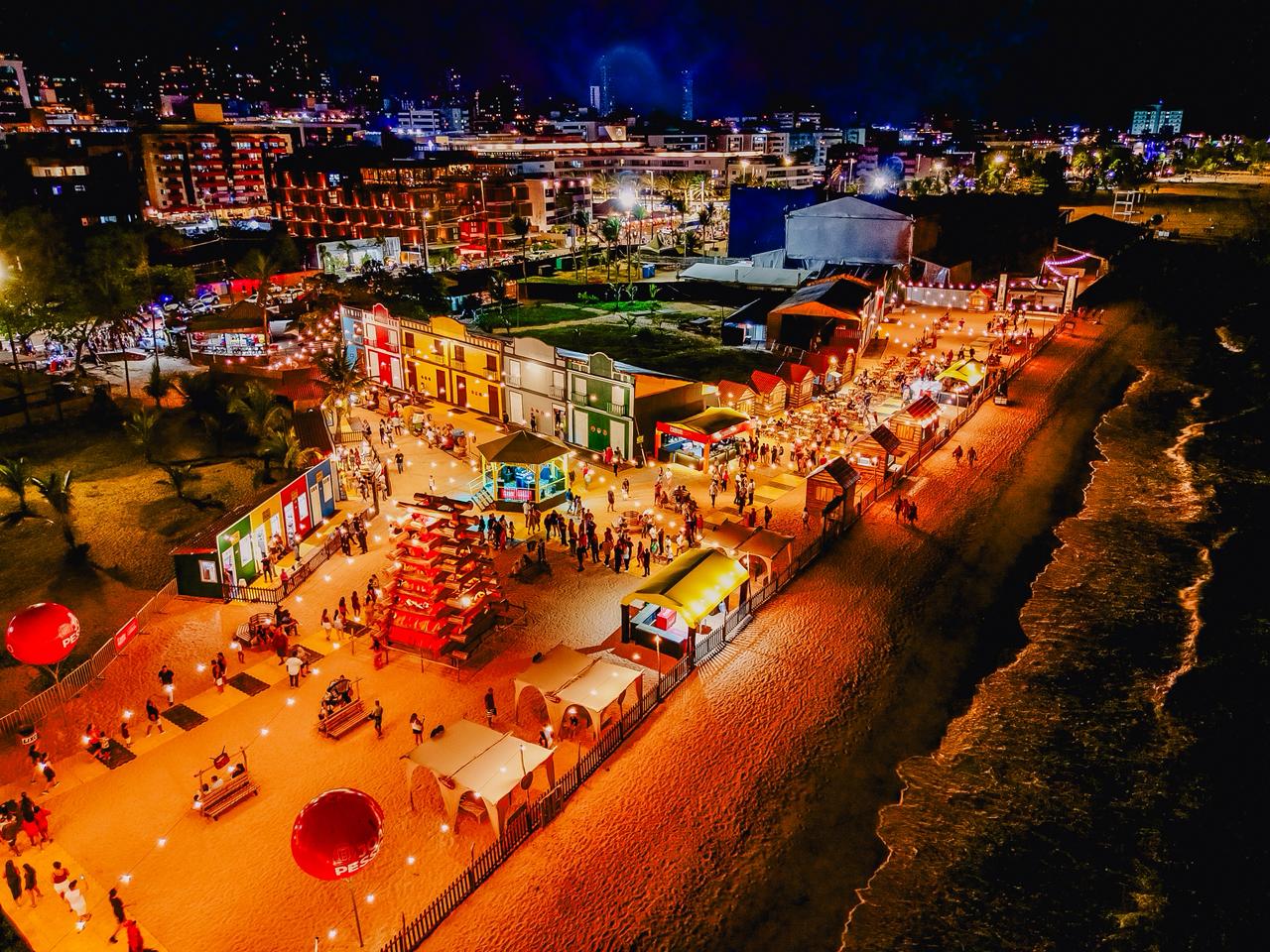 Concentrada em um trecho de fácil acesso da orla, a Cidade do Forró reúne barracas voltadas à venda de comidas típicas, bebidas e artesanato regional. A disposição das estruturas foi pensada para permitir circulação rápida do público e, ao mesmo tempo, valorizar a vista para o litoral.