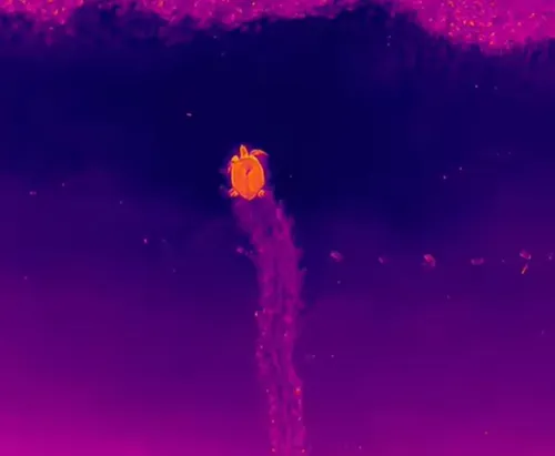 O conceito de “assinatura térmica” refere-se ao padrão de calor emitido por um organismo, detectável por sensores capazes de distinguir a temperatura do animal em relação à da areia. Esse contraste permite localizar a tartaruga e identificar o ponto da desova mesmo à distância e durante a noite, período em que a postura de ovos é mais frequente.