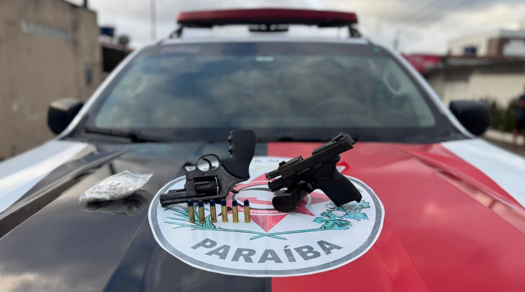 Durante patrulhamento tático, equipes da Polícia Militar abordaram o suspeito e encontraram duas armas de fogo: um revólver e uma pistola, ambas municiadas com projéteis intactos.