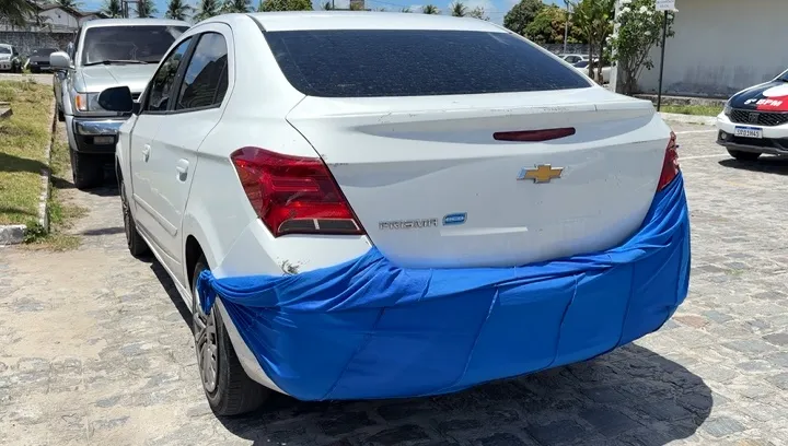 Segundo a corporação, uma denúncia levou os policiais a um condomínio no bairro Esplanada. No local, foi encontrado um carro sem a placa dianteira e com um lençol cobrindo a traseira. A equipe confirmou que se tratava do mesmo automóvel registrado pelas câmeras de segurança durante o arrombamento.